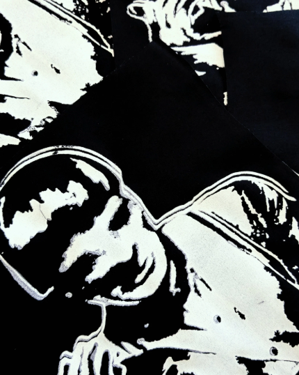 Whether you're at a symphony or bar, this Jonathan Bree patch is the perfect addition to any outfit. These 6.5x6.5 inch patches are each uniquely printed via screen and all have a different look to them. Perfect to sew onto any surface you so please~
