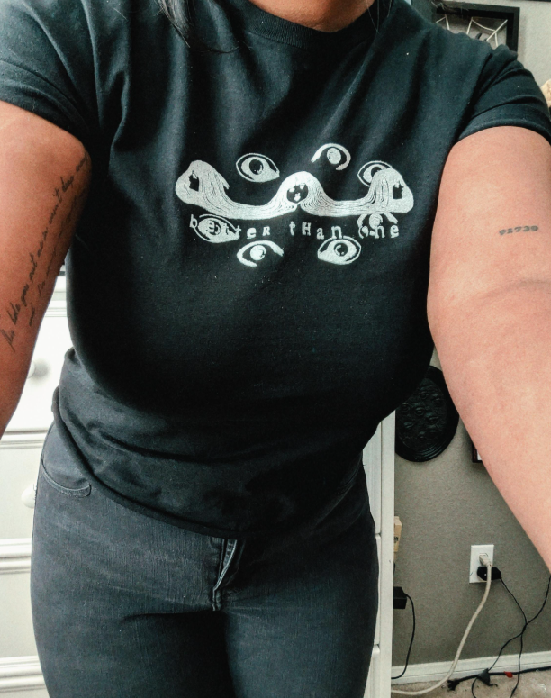 You ever hear that two heads are better than one... try three. Designed by From the Undead, featuring illustration by Helen Stratton, a 1890s British illustrator, who created the image of the three girl heads for the book Songs for Little People. This 100% single knit cotton tshirt is incredibly soft and screen-printed for a unique look on each shirt. This shirt will truly make your head spin (!! Warning !! From the Undead does not take responsibility for too many rotations of said head)